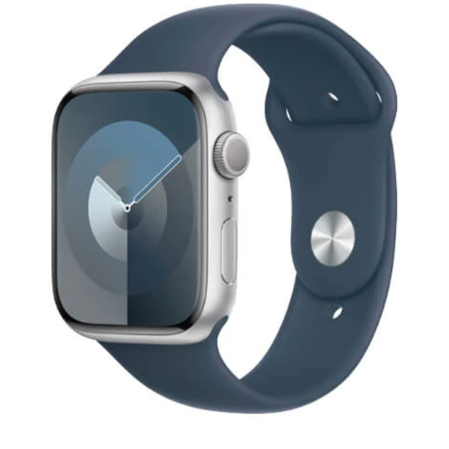 Apple Watch Series 9 . Risoluzione del display: 352 x 430 Pixel, Touch screen. Memoria flash: 64 GB. Wi-Fi. GPS (satellitare). Peso: 42,3 g. Impermeabile fino a: 50 m, Colore cinturino: Blu. Sistema operativo incluso: watchOS 10