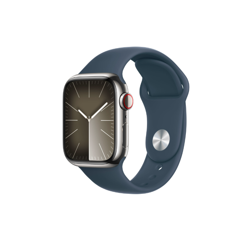 Apple Watch Series 9 GPS + Cellular Cassa 41mm in Acciaio inossidabile con Cinturino Blu Tempesta - M/L, Touch screen, 64 GB, Wi-Fi, GPS (satellitare), 42,3 g