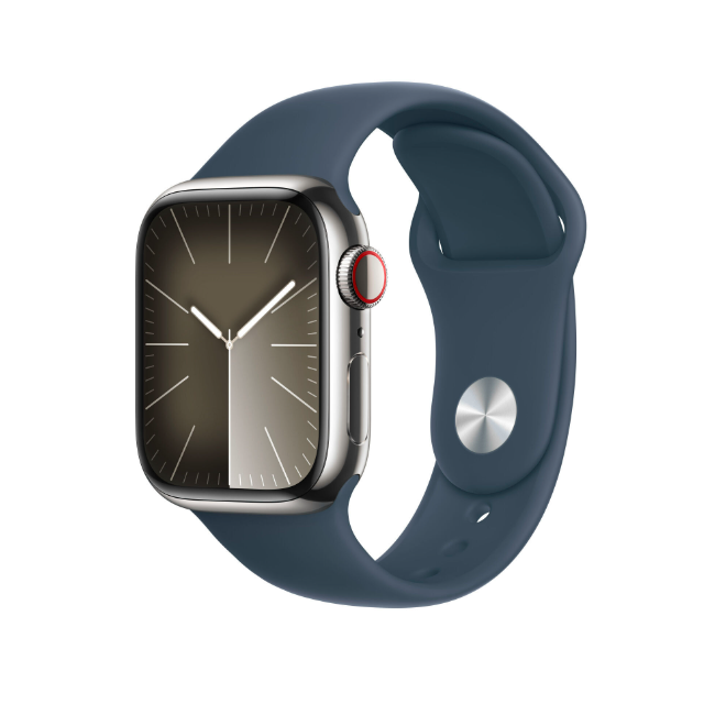 Apple Watch Series 9 GPS + Cellular Cassa 45mm in Acciaio inossidabile con Cinturino S Blu Tempesta - S/M, Touch screen, 64 GB, Wi-Fi, GPS (satellitare), 51,5 g