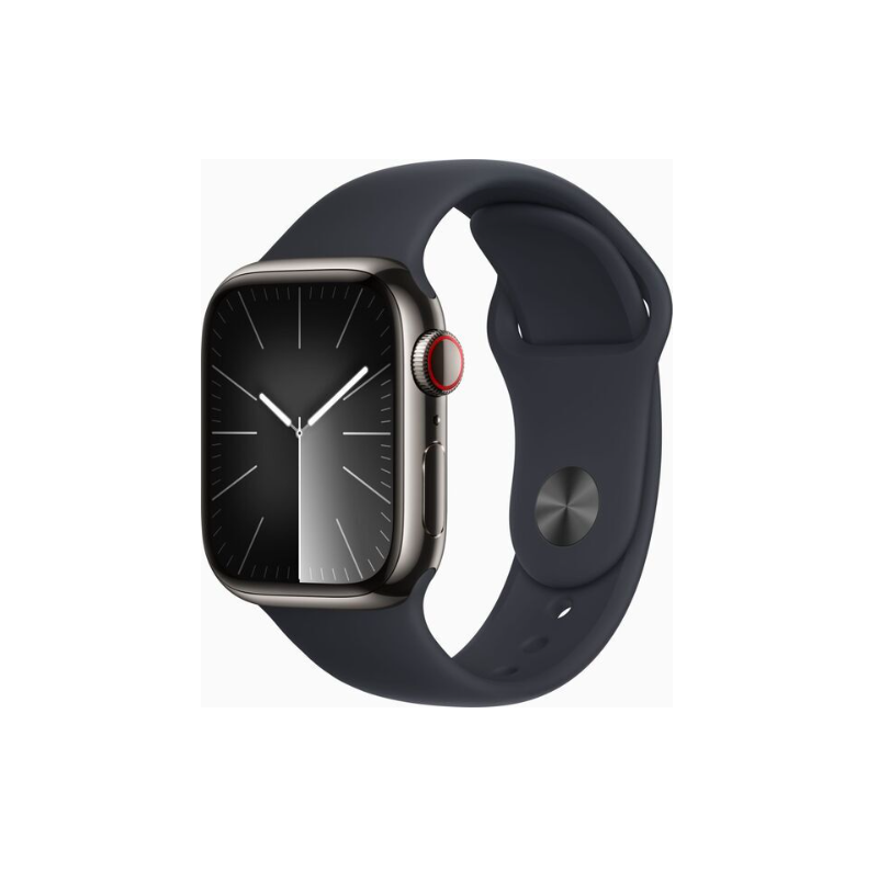 Apple Watch Series 9 GPS + Cellular Cassa 45m in Acciaio inossidabile Grafite con Cinturino Band Mezzanotte - M/L. Risoluzione del display: 396 x 484 Pixel, Touch screen. Memoria flash: 64 GB. Wi-Fi. GPS (satellitare). Peso: 51,5 g. Impermeabile fino a: 50 m, Colore cinturino: Nero. Sistema operativo incluso: watchOS 10