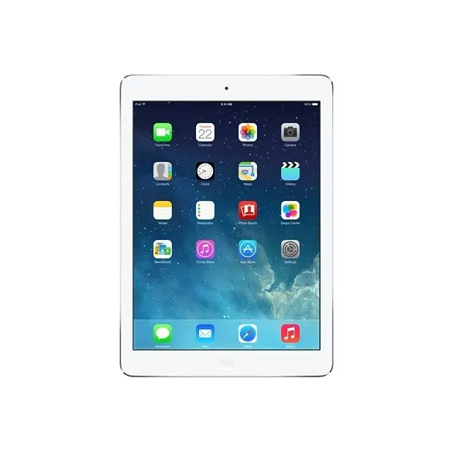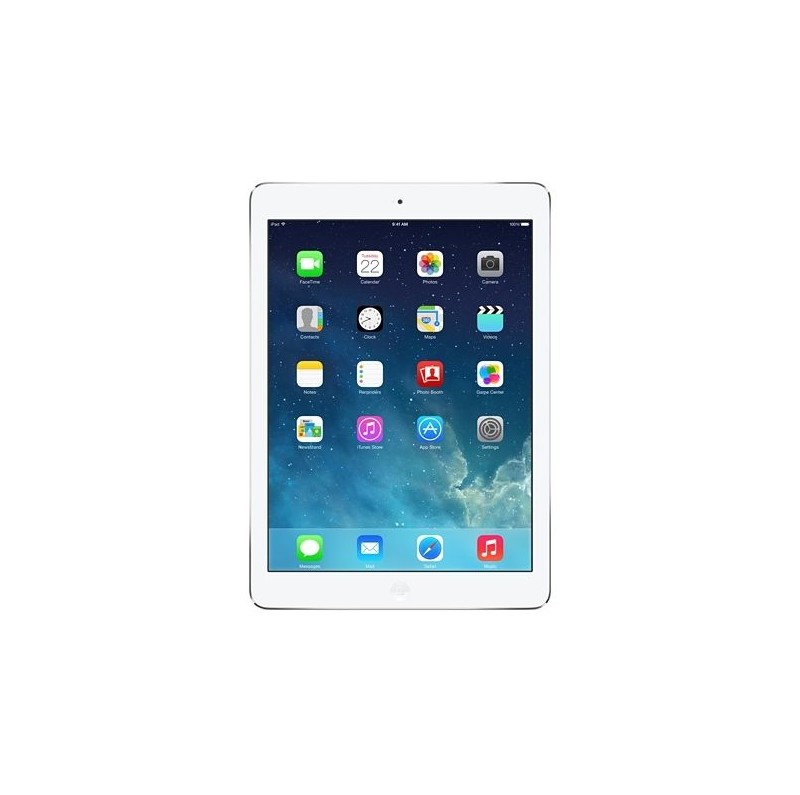 Apple iPad Air. Dimensioni schermo: 24,6 cm (9.7"), Risoluzione del display: 2048 x 1536 Pixel, Tecnologia display: IPS. Capacità memoria interna: 32 GB. Famiglia processore: Apple, Modello del processore: A7. Risoluzione fotocamera posteriore (numerico): 5 MP, Tipo di fotocamera posteriore: Fotocamera singola, Risoluzione fotocamera frontale (numerico): 1,2 MP, Fotocamera frontale. Wi-Fi standard: Wi-Fi 4 (802.11n). Peso: 469 g. Sistema operativo incluso: iOS. Colore del prodotto: Argento